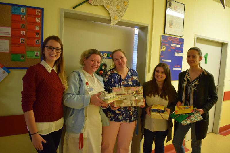 Together we went to the hospitals in a small group of people, because the number of people that can come there is limited. The nurses organised for us names of the kids and asked everyone if we can take photos with them. We have brought there plenty of the books and toys and also as a present a diploma for Braveness with the child´s name. Some kids could come to pick their presents but some of them had to stay in their room because they couldn´t walk. So we took Ježíšek to their room. It´s such heartwarming to see the children happy. Some of them had there their parents and for us was another present the faces of the parents. They were happy with their kids for the present and proud that  students organise this event.  The nurses took a nice photo with us, because we gave present (boardgame) to each hospital also, we left there some old books for their library and some small stuff like puzzles, domino, pexeso etc. Can you imagine better reward than smiling people around you? And you know that they smile because you gave them your time!